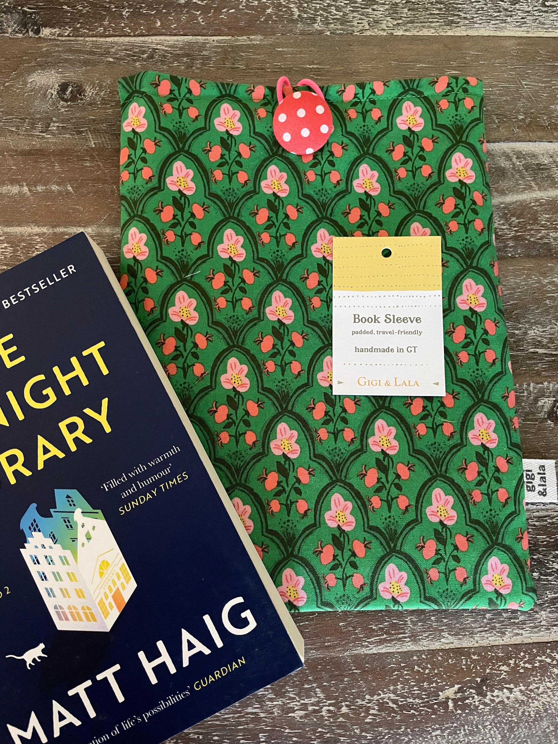 Padded book pouch: Green Wood Block print, book sleeve, book cozy