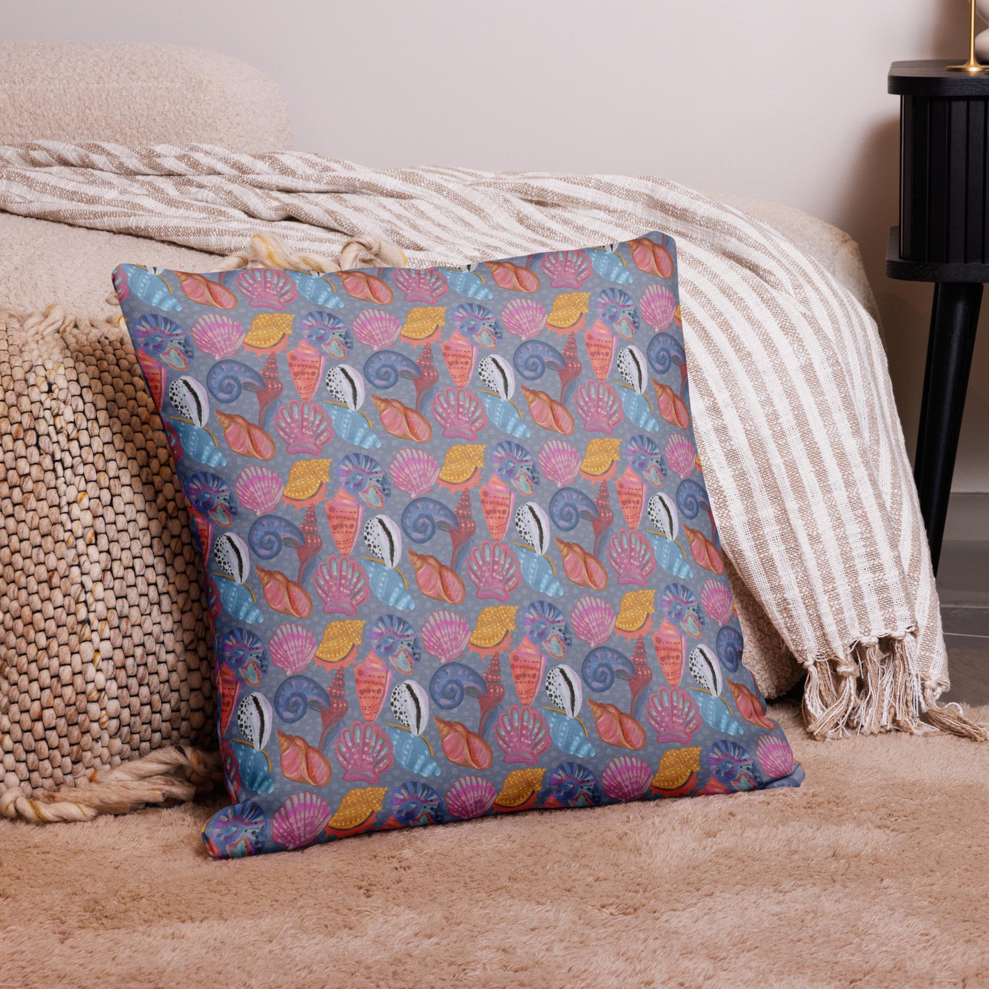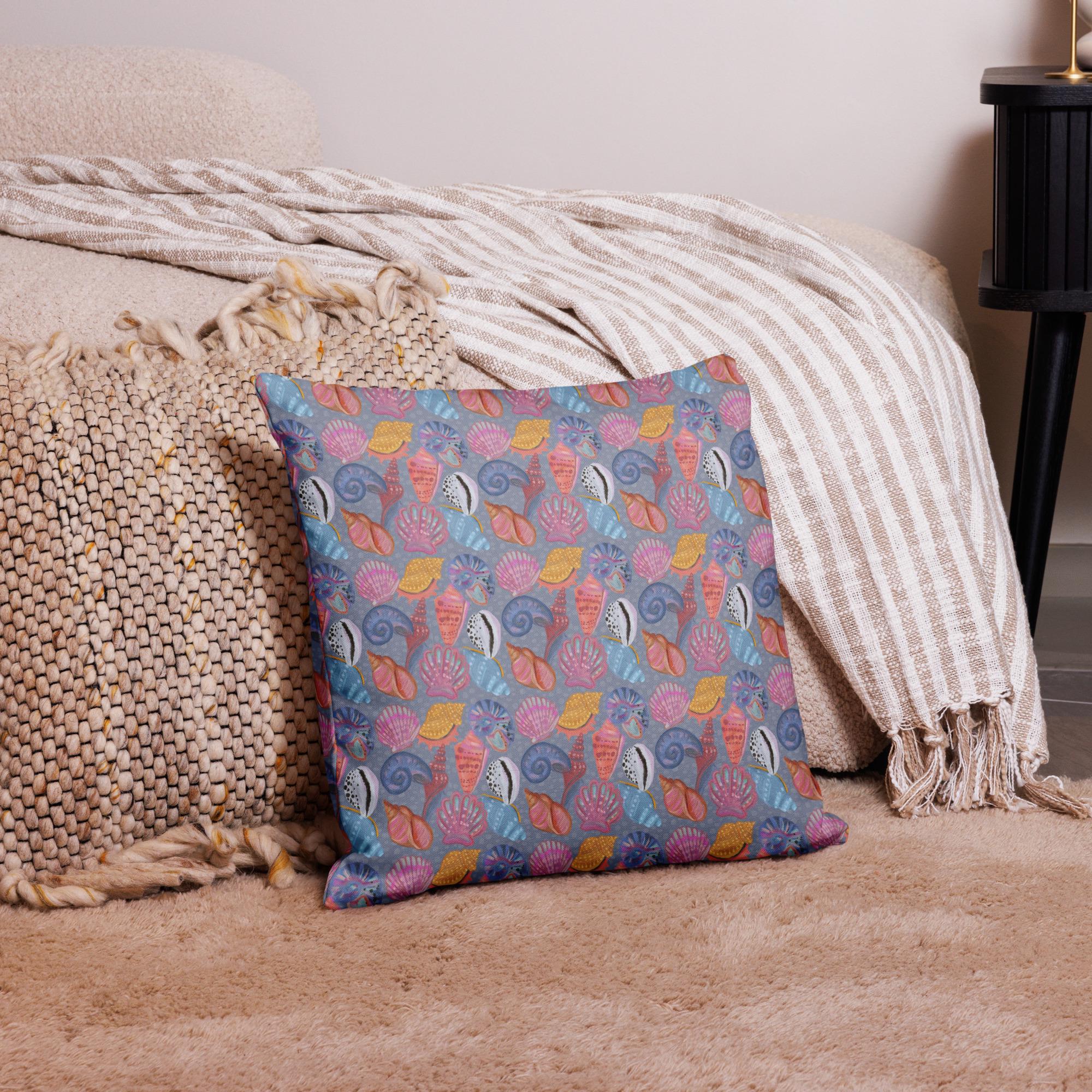 This pattern of hand-drawn shells will be a unique addition to any beach-themed room! This premium feel pillow with a shape-retaining insert is just what you're looking for--it'll make any room luxurious and provide the perfect excuse for a quick power nap.