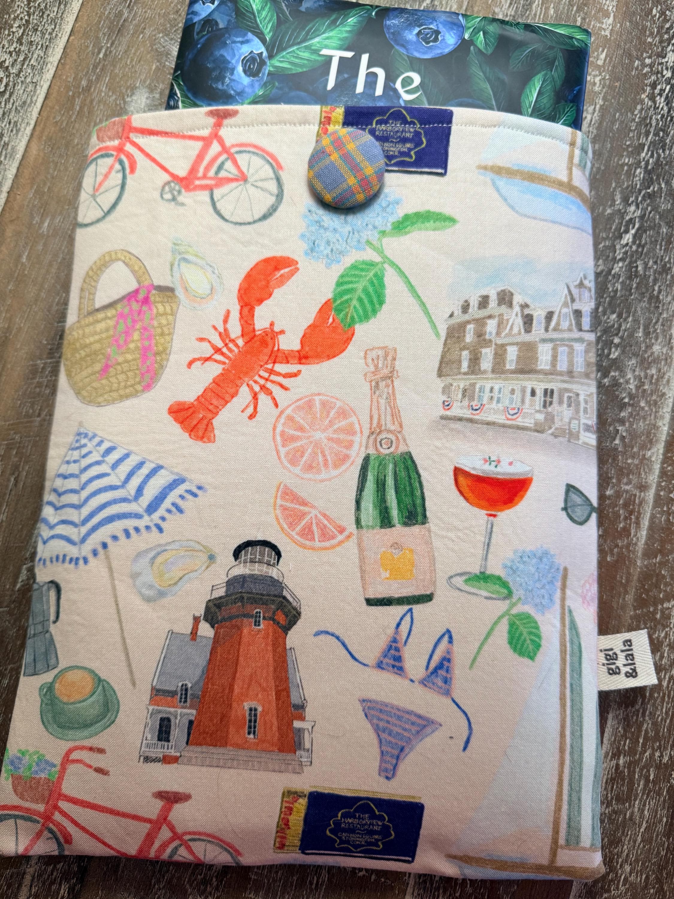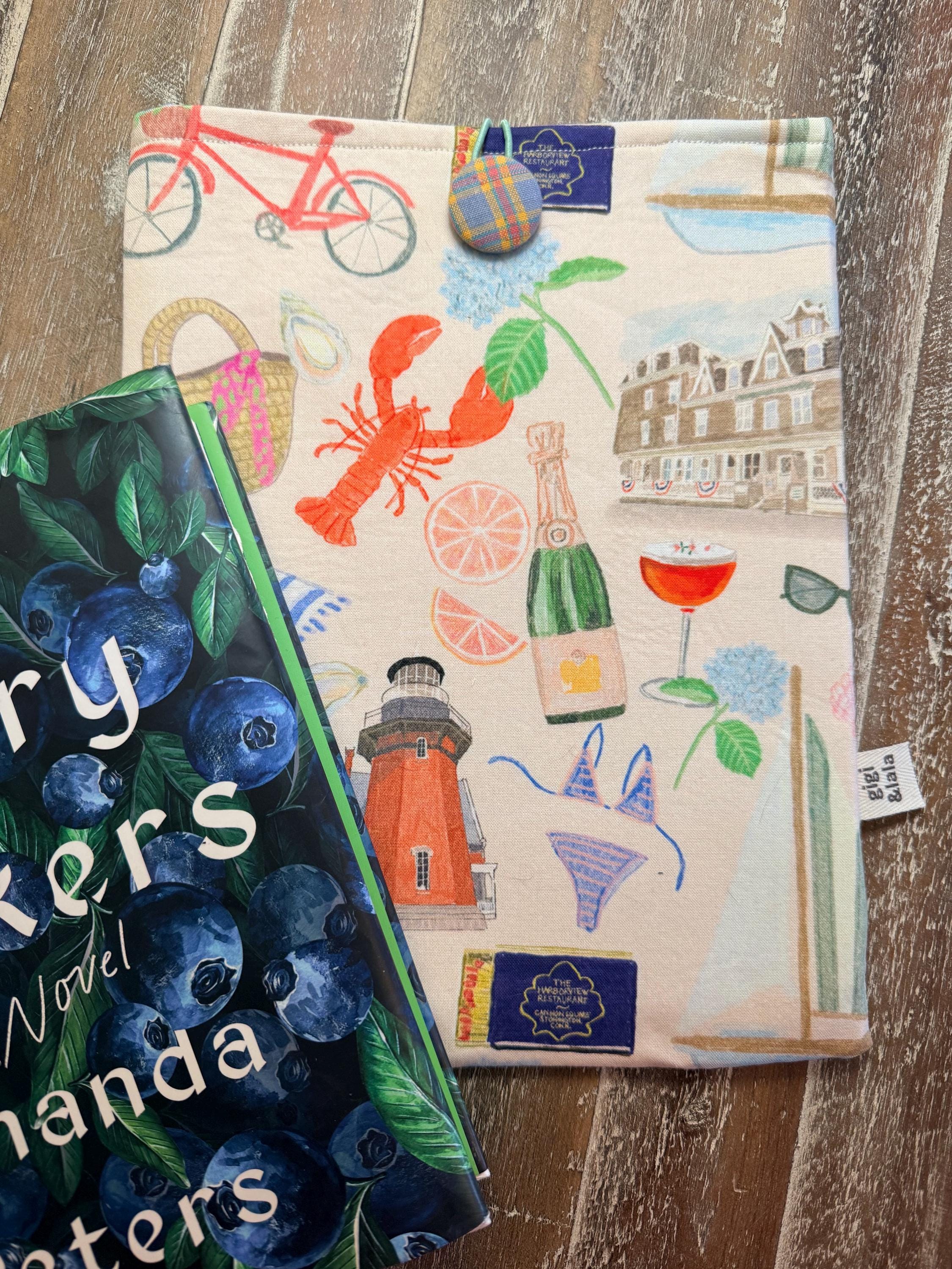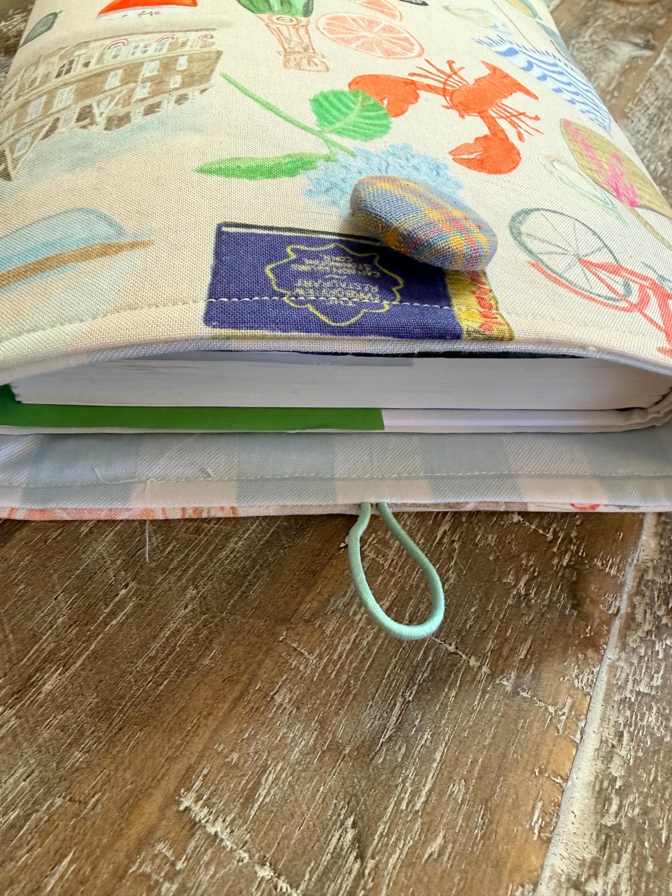 A handmade padded pouch to keep your books safe while traveling or while in your handbag. Cotton fabric, lined with a coordinating cotton and padded with fleece. Elastic and button closure. Two sizes: softcover (7.5”x9.5”), and hardcover (8.5”x11”). Can be used as a tablet pouch as well!