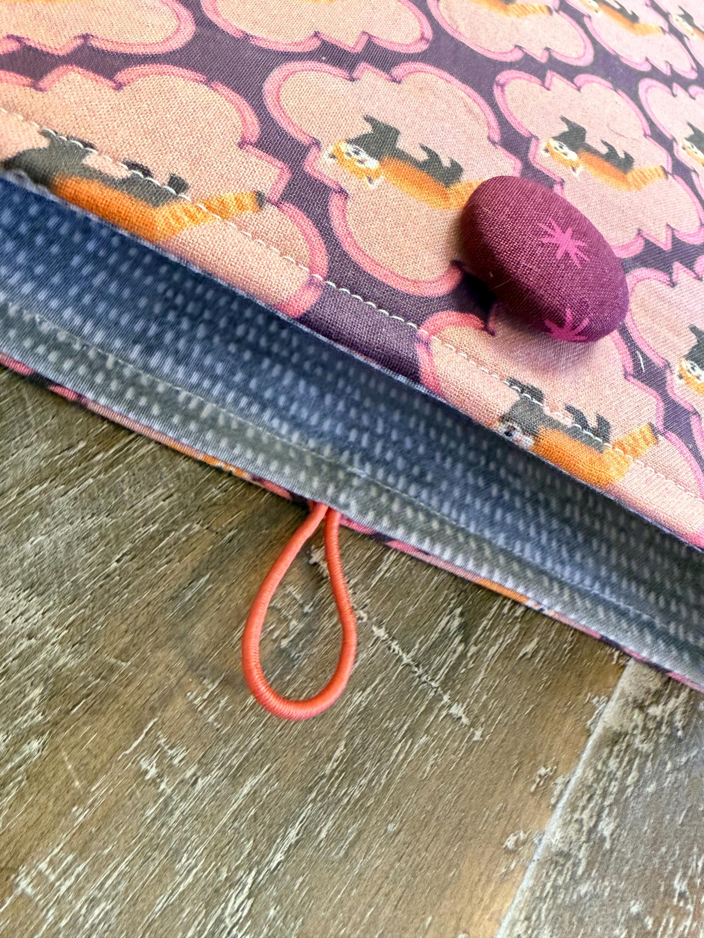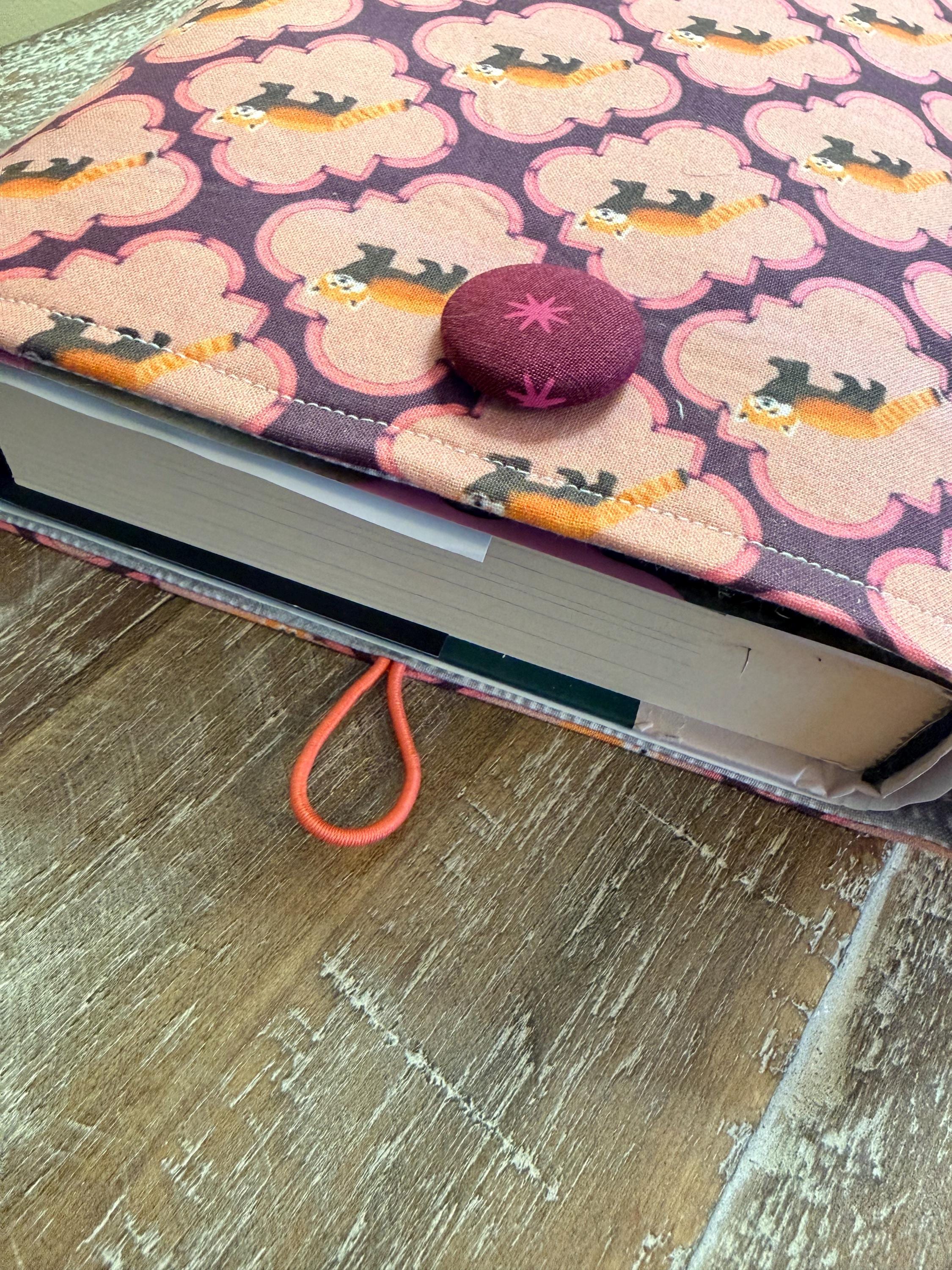 A handmade padded pouch to keep your books safe while traveling or while in your handbag. Cotton fabric, lined with a coordinating cotton and padded with fleece. Elastic and button closure. Two sizes: softcover (7.5”x9.5”), and hardcover (8.5”x11”). Can be used as a tablet pouch as well!