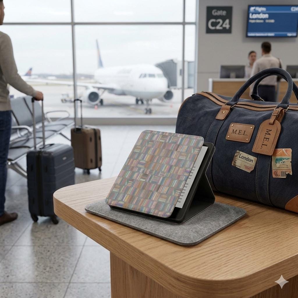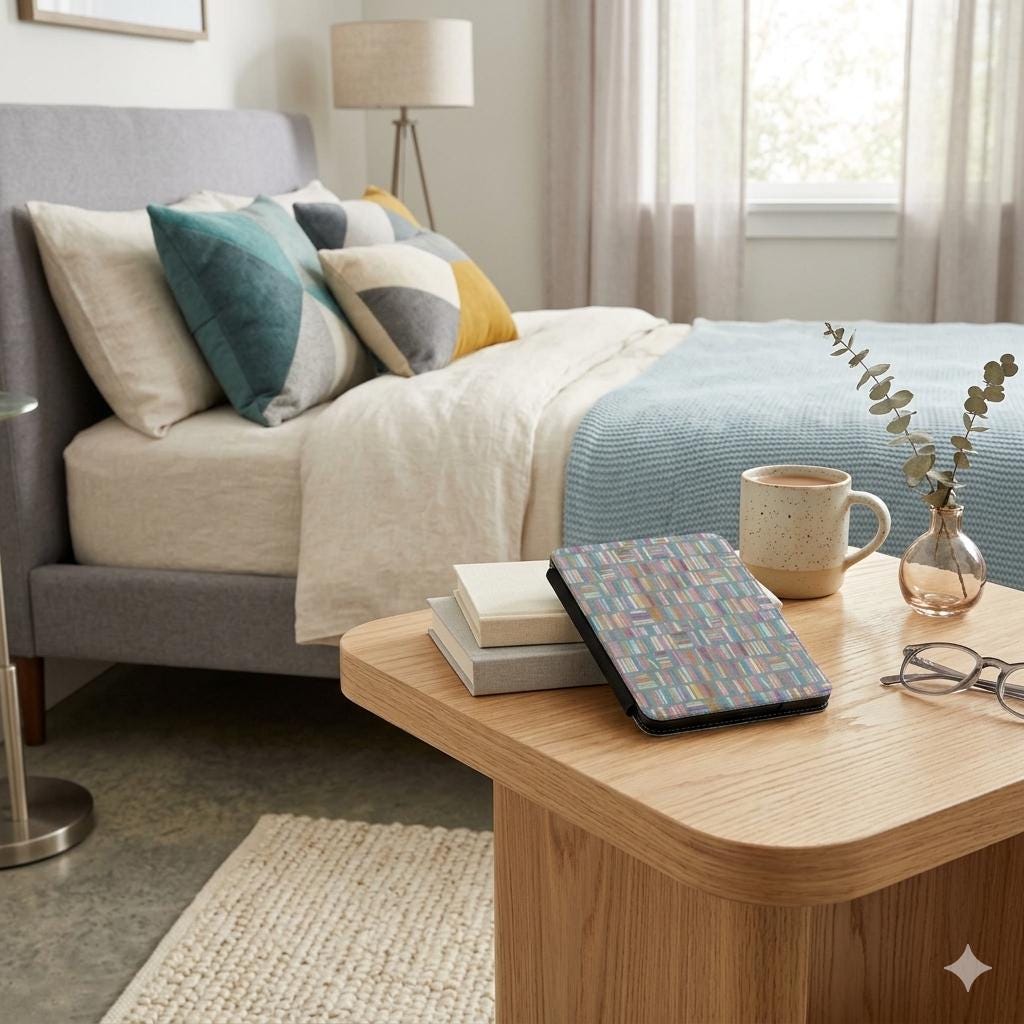 A slim, stylish protective cover that brings a hand-drawn library of color to your daily reading. The soft-satin PU leather wraps your Kindle in a smooth, slightly glossy finish that catches light just enough to show off the tiny stacked-book pattern. Inside, a soft fabric lining cushions the screen while a discreet hand strap makes one-handed browsing or commuting effortless. The magnetic front lid snaps shut to keep pages and notifications private, and the case fits current 7” Paperwhite and Colorsoft Signature Edition Kindles so you can slide it into a bag or tote without extra bulk. Bring warmth and whimsy to your reading routine — whether you’re commuting, curled on the couch, or carrying a few chapters into the park.