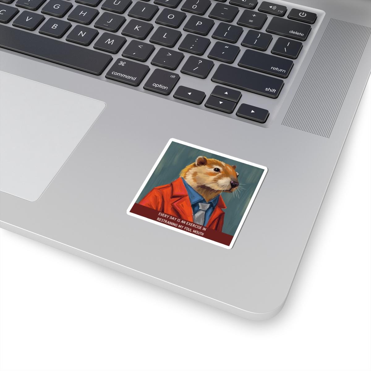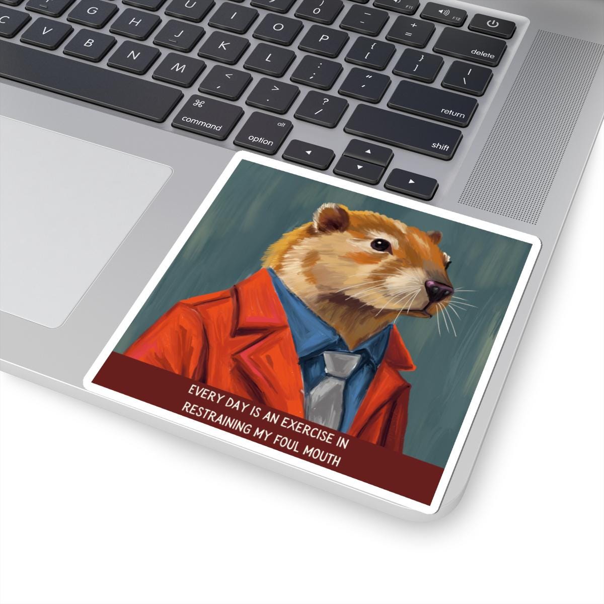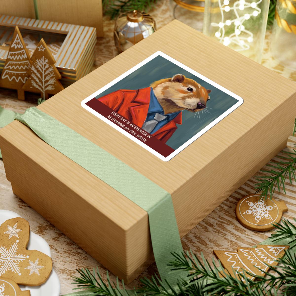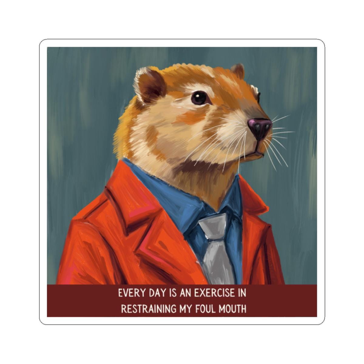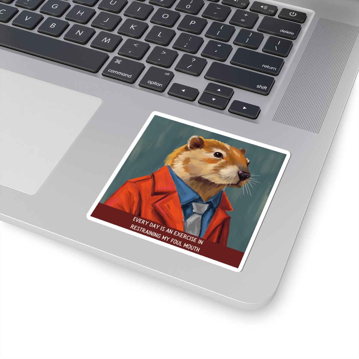 A glossy kiss-cut sticker that brings a wink of wit to laptops, journals, and any smooth flat surface. The hand-drawn illustration features a vintage woodchuck teacher in a tan blazer, mid-lecture, with the tongue-in-cheek saying, “Every Day is an Exercise in Restraining My Foul Mouth”. Colors are vivid thanks to eco-solvent inks, and the scratch-resistant finish keeps the artwork bright through everyday use. Choose white or transparent backgrounds and four size options to place this charming, slightly ironic piece where it will prompt smiles—study desks, classroom binders, or your favorite notebook.
