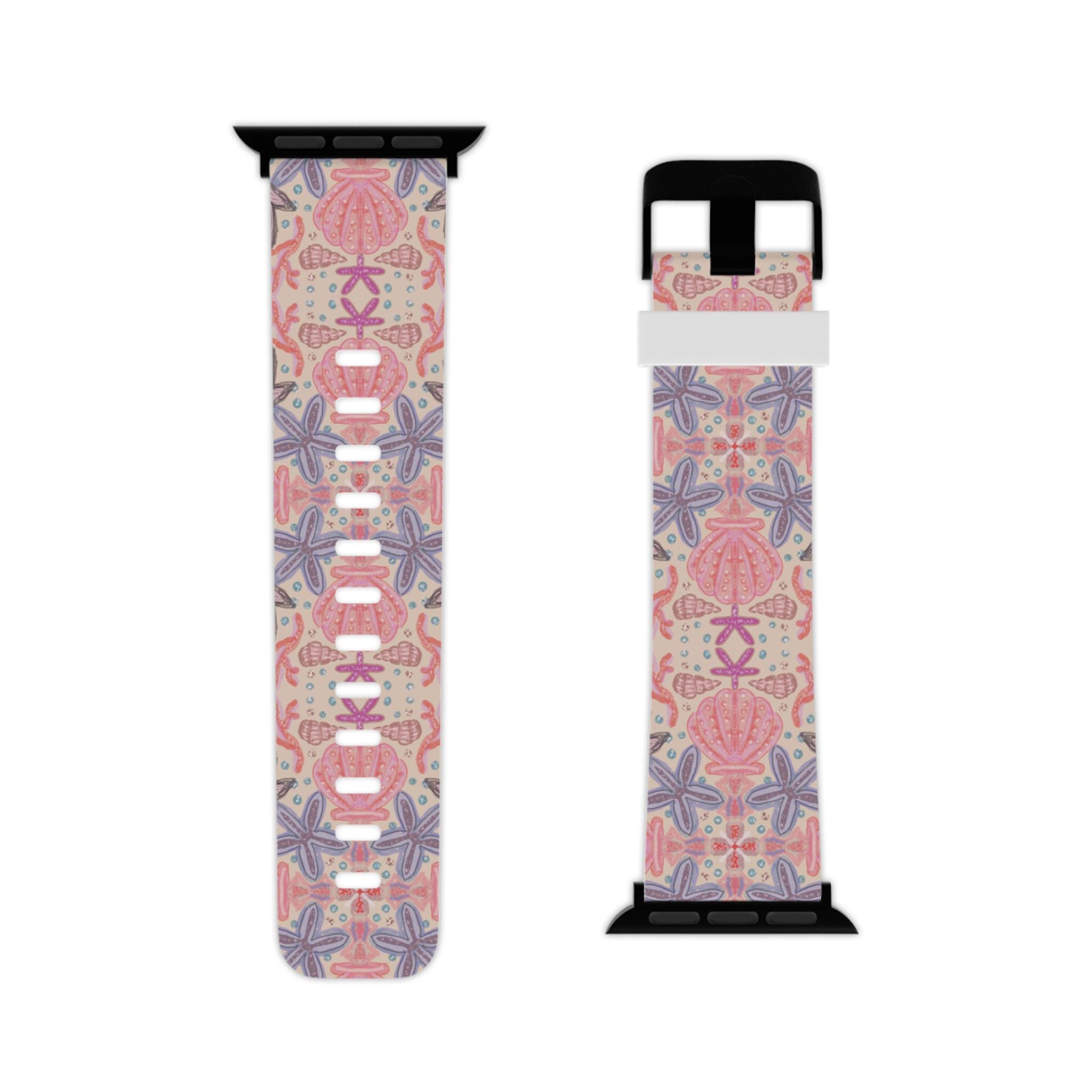 A hand-drawn patterned watch band that brings a subtle beach vibe to your Apple Watch. Lightweight TPU with a medical-grade thermo-elastomer feel wraps the wrist like a second skin — breathable, sweat-resistant and built for movement. Anodized aluminum buckles and stainless steel adapters give it a refined hold while the white loop adds a subtle, modern contrast. Easy to swap in and out, this band turns your watch into an understated statement piece that travels from work day to vacation mode without missing a beat.