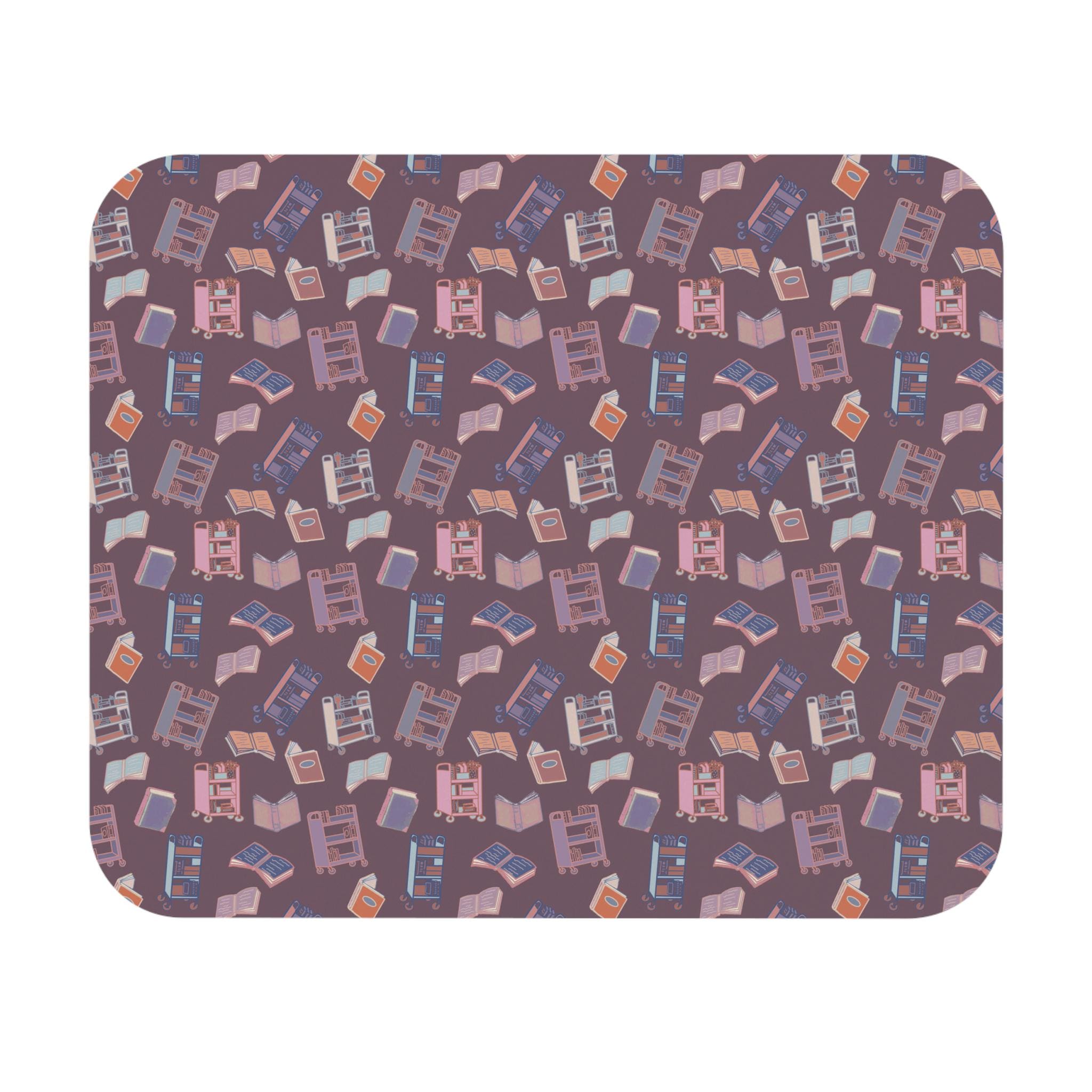 Settle into a cozy corner with a mouse pad that feels like a quiet library afternoon. Soft, muted mauve tones hold a repeating pattern of tiny book carts, open pages and stacked reads — an homage to slow reading and focused work. The smooth surface makes cursor movements fluid, while the low-profile foam keeps your desk tidy and uncluttered. It brings a gentle, literary vibe to study sessions, late-night writing, or relaxed browsing. Place it beside your favorite mug and let it anchor a calm, bookish workspace.