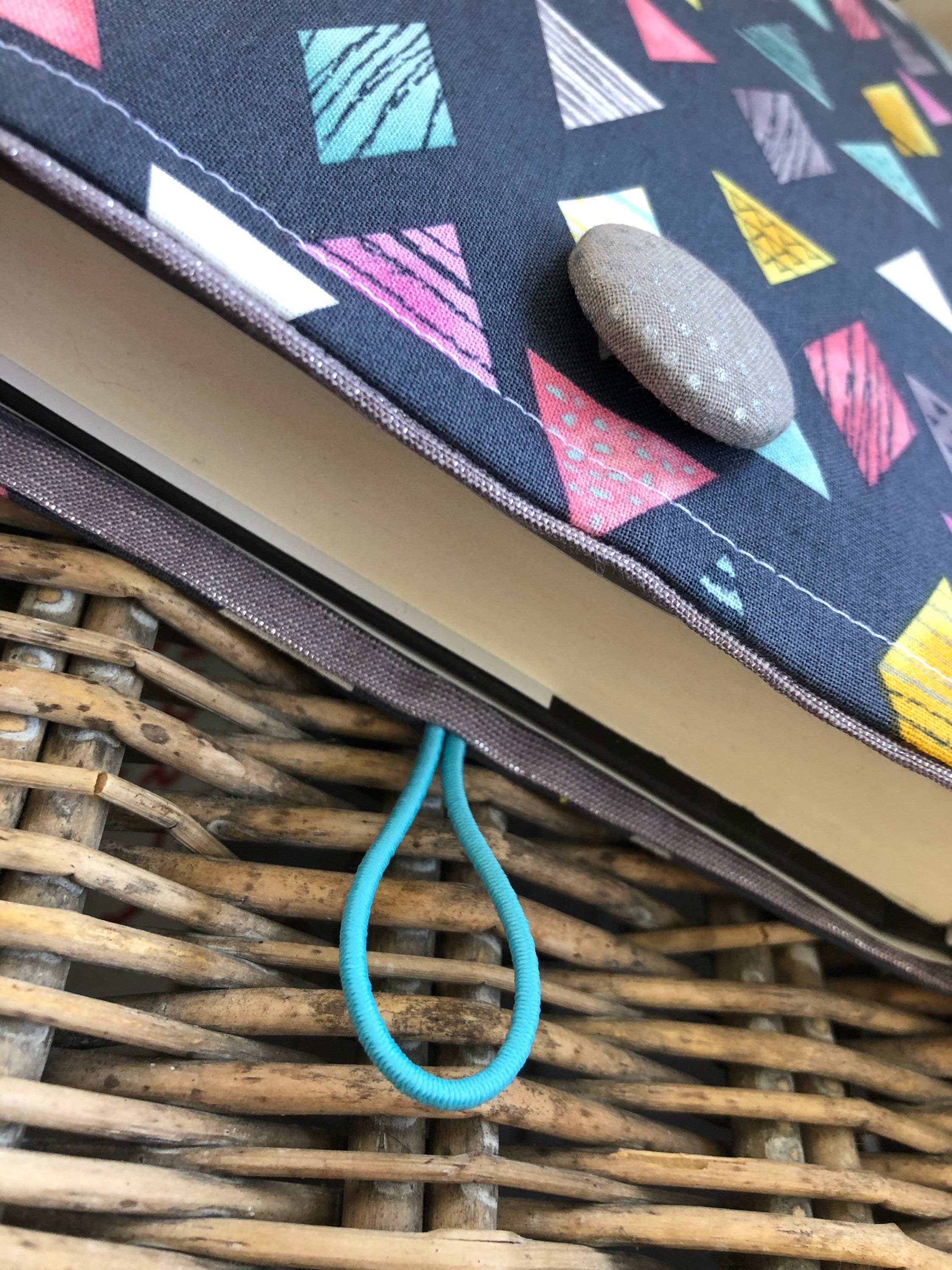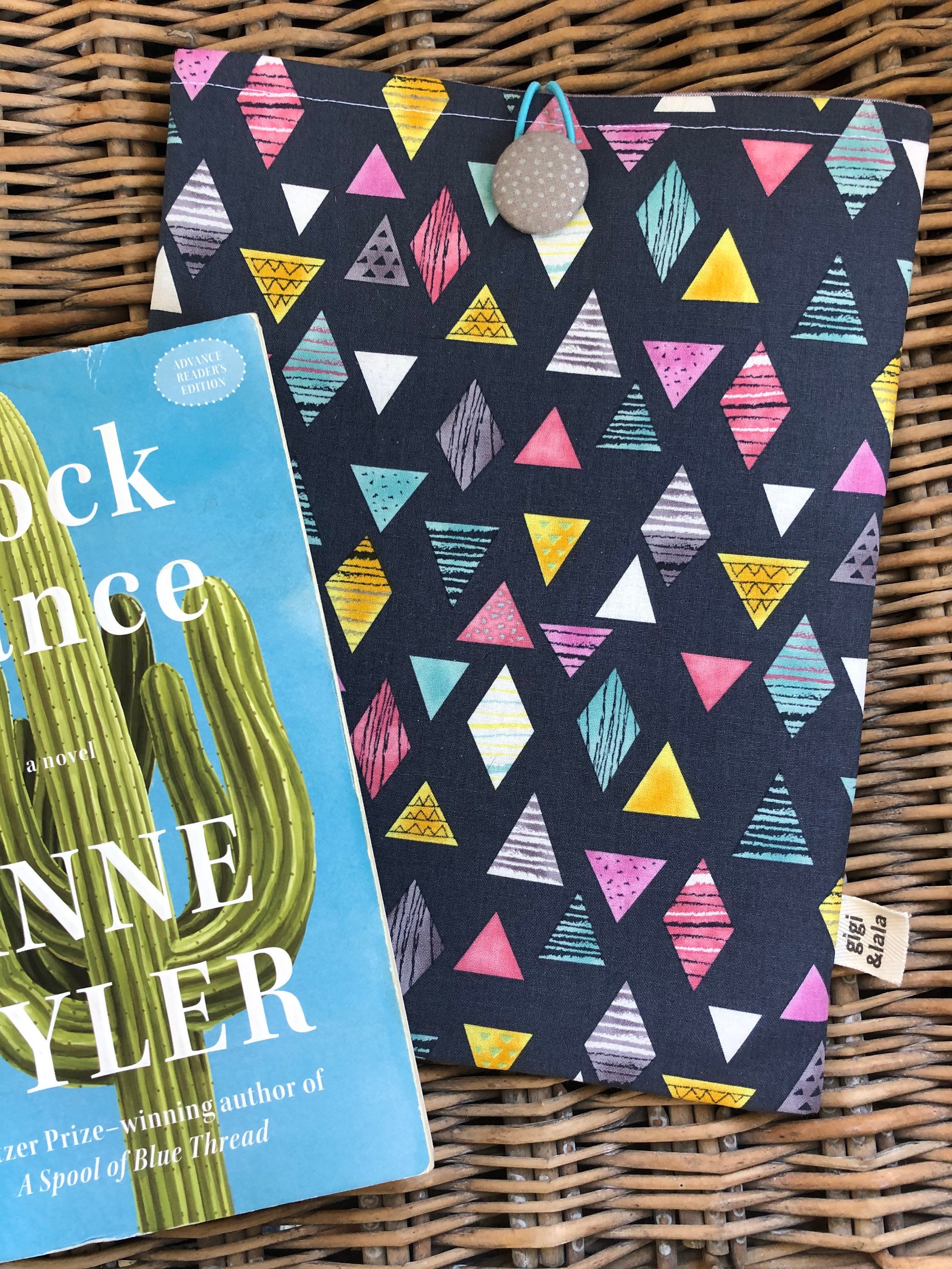 A handmade padded pouch to keep your books safe while traveling or while in your handbag. Cotton fabric, lined with a coordinating cotton and padded with fleece. Elastic and button closure. Two sizes: softcover (7.5”x9.5”), and hardcover (8.5”x11”).